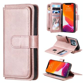 For iPhone 13 Pro Multifunctional Magnetic Copper Buckle Horizontal Flip Solid Color Leather Case with 10 Card Slots & Wallet & Holder & Photo Frame (Rose Gold)