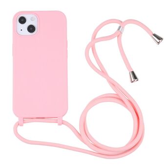 For iPhone 13 Pro Candy Colors TPU Protective Case with Lanyard (Rose Gold)