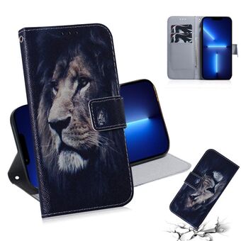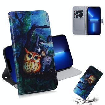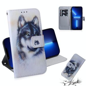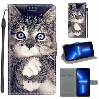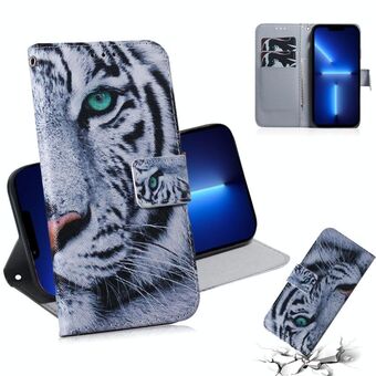 For iPhone 13 Pro Voltage Colored Drawing Magnetic Clasp Horizontal Flip PU Leather Case with Holder & Card Slots (C02 Fork Hand White Claw Cat)