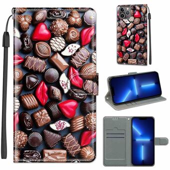 For iPhone 13 Pro Voltage Colored Drawing Magnetic Clasp Horizontal Flip PU Leather Case with Holder & Card Slots (C06 Red Lip Chocolate)