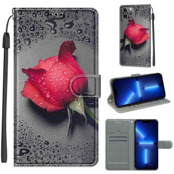 For iPhone 13 Pro Voltage Colored Drawing Magnetic Clasp Horizontal Flip PU Leather Case with Holder & Card Slots (C16 Water Drop Six Petal Flower)