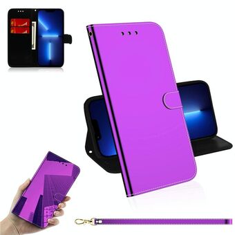 For iPhone 13 Pro Imitated Mirror Surface Horizontal Flip Leather Case with Holder & Card Slots & Wallet & Lanyard (Purple)