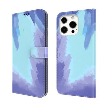 For iPhone 13 Pro Watercolor Pattern Horizontal Flip Leather Case with Holder & Card Slot & Wallet (Cyan Green)