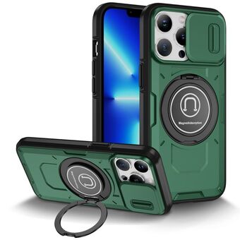 For iPhone 13 Pro Sliding Camshield TPU Hybrid PC Magnetic Holder Phone Case(Dark Green)