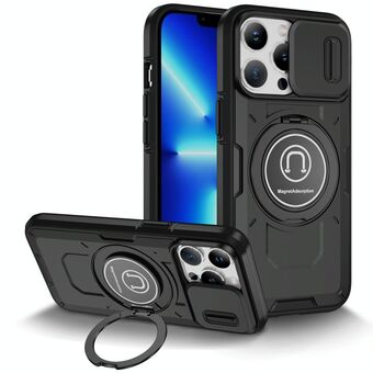 For iPhone 13 Pro Sliding Camshield TPU Hybrid PC Magnetic Holder Phone Case(Black)