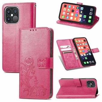For iPhone 13 Pro Four-leaf Clover Clasp Embossed Buckle Mobile Phone Protection Leather Case with Lanyard & Card Slot & Wallet & Bracket Function(Magenta)