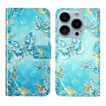 For iPhone 13 Pro Oil Embossed 3D Drawing Leather Phone Case(Blue Butterflies)