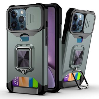 For iPhone 13 Pro Shockproof Armor Protective Case with Slide Card Slot (Pink)