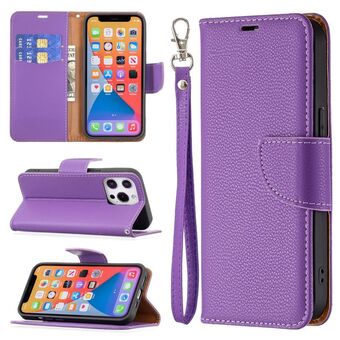 For iPhone 13 Pro Litchi Texture Pure Color Horizontal Flip Leather Case with Holder & Card Slots & Wallet & Lanyard (Purplez)