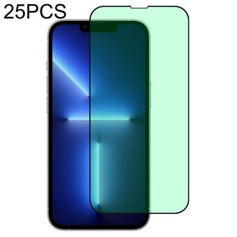 For iPhone 16e / 13 / 13 Pro 25pcs Green Light Eye Protection Tempered Glass Film