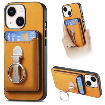 For iPhone 13 Retro Folding Ring Holder Card Bag MagSafe Phone Case(Yellow)