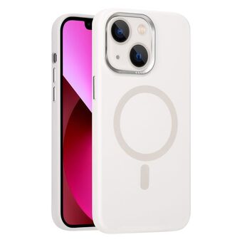 For iPhone 13 Metal Lens Frame Liquid Silicone MagSafe Phone Case(White)