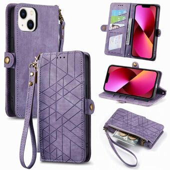 For iPhone 13 Geometric Zipper Wallet Side Buckle Leather Phone Case(Purple)