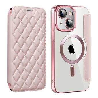 For iPhone 13 Shield Magsafe RFID Anti-theft Rhombus Leather Phone Case(Pink)
