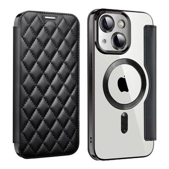 For iPhone 13 Shield Magsafe RFID Anti-theft Rhombus Leather Phone Case(Black)