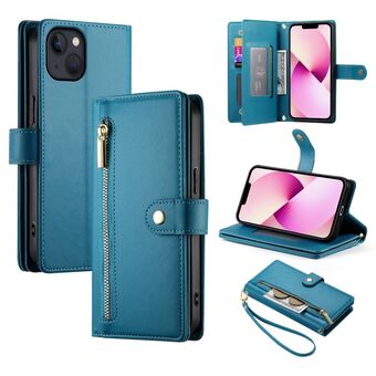 For iPhone 13 Nine Card-slot Zipper Wallet Bag Leather Phone Case(Blue)