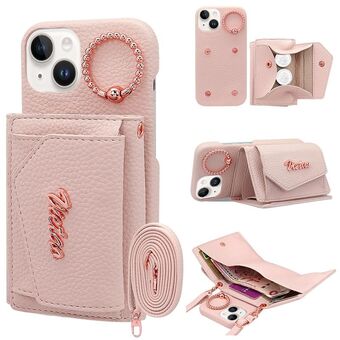 For iPhone 13 VIETAO Ring Holder Wallet PU Phone Case with Lanyard(Pink) (VIETAO)