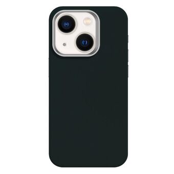 For iPhone 13 Skin Feel Fine Leather Texture Metal Lens Frame MagSafe Phone Case(Blackish Green)