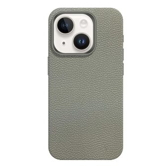 For iPhone 13 Skin Feel Fine Leather Texture Metal Lens Frame MagSafe Phone Case(Brown Gray)