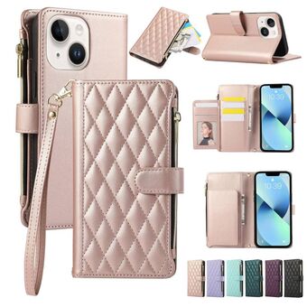 For iPhone 13 VIETAO Rhombic Texture Wristband PU Phone Case(Purple) (VIETAO)