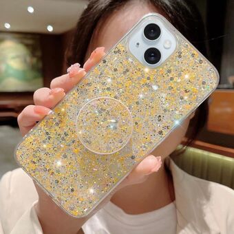Θήκη τηλεφώνου για iPhone 13 με λαμπερά παγιέτ, στρογγυλή βάση στήριξης, εποξειδική ρητίνη και TPU (Κίτρινο)