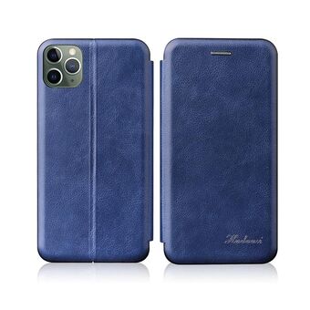 Θήκη τηλεφώνου για iPhone 13 από γνήσιο δέρμα PU με ανάγλυφη υφή και λεπτομέρεια γραμμής (Μπλε)