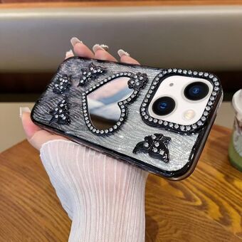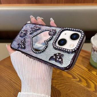 Θήκη τηλεφώνου για iPhone 13 σε σχήμα καρδιάς, με καθρέφτη και λάμψη διαμαντιών (Μπλε)