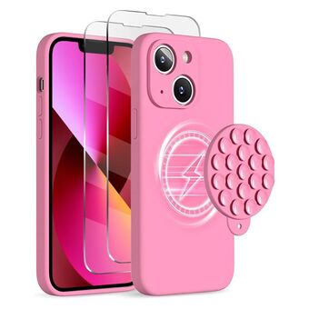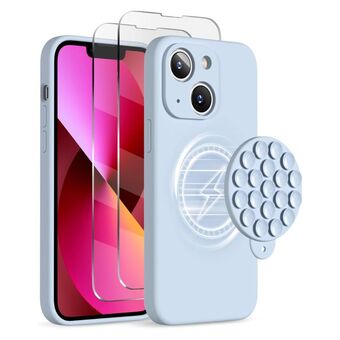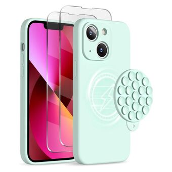 Θήκη τηλεφώνου MagSafe για iPhone 13 από σιλικόνη με βεντούζα και προστατευτική μεμβράνη οθόνης (Μέντας Πράσινο)