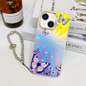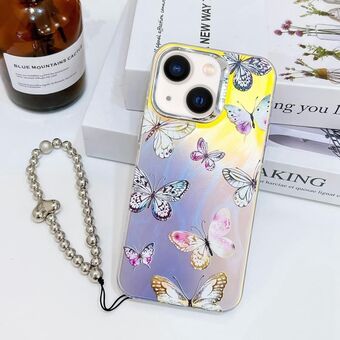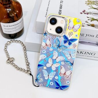 Θήκη τηλεφώνου με ηλεκτρολυτική επίστρωση και σχέδιο πεταλούδας laser για iPhone 13 με λουρί καρπού (Χρώμα Πεταλούδες AB1)