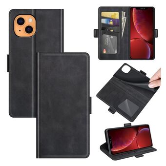Θήκη δέρματος οριζόντιας αναδίπλωσης με μαγνητική αγκράφα διπλής όψης για iPhone 13 με βάση & υποδοχές καρτών & πορτοφόλι (Μαύρο)