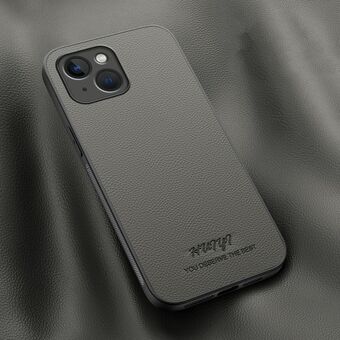Θήκη για iPhone 13 από TPU με υφή δέρματος λυτσί, ανθεκτική στις κρούσεις (Μαύρο)