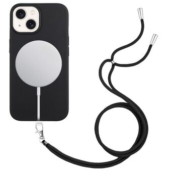For iPhone 13 Wheat MagSafe Magnetic Straw Material + TPU Phone Case with Lanyard(Black)