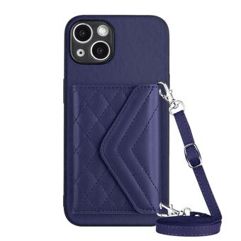 For iPhone 13 Shockproof Leather Phone Case with Wrist Strap(Purple)