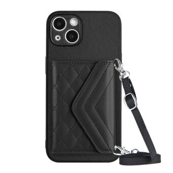 For iPhone 13 Crossbody Lanyard Zipper Wallet Leather Phone Case(Black)