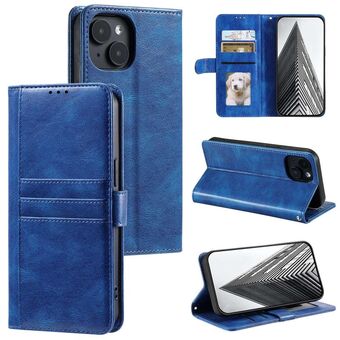 For iPhone 13 Fierre Shann Crazy Horse Card Holder Back Cover PU Phone Case(Blue) (FIERRE SHANN)