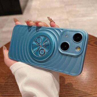 For iPhone 13 Wave Texture PC Shockproof Phone Case with Holder(Blue)