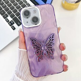 For iPhone 13 Plating Glitter Texture Butterfly Holder TPU Phone Case with Lens Film(Purple Feather Yarn)