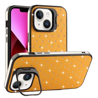 For iPhone 13 Starry Bling Diamonds Lens Holder Phone Case(Orange)