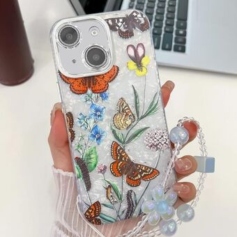 For iPhone 13 Electroplating Flowers Plants Texture Wristband TPU Phone Case(Butterfly Love Flower FL17)