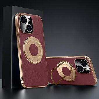 For iPhone 13 Plain Leather Hydric Metal Holder MagSafe Phone Case(Red)