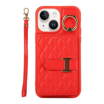 For iPhone 13 Horizontal Card Bag Ring Holder Phone Case with Dual Lanyard(Red)