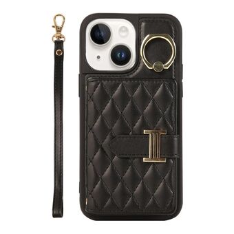 For iPhone 13 Horizontal Card Bag Ring Holder Phone Case with Dual Lanyard(Black)
