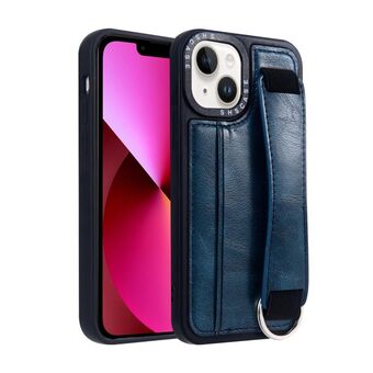 For iPhone 13 Photo Frame Card Wallet Wrist Strap Holder Back Cover Phone Case(Royal Blue)