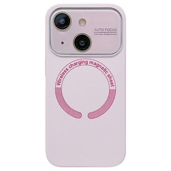 For iPhone 13 Large Window Acrylic Glass Lens MagSafe Silicone Phone Case(Rose Pink)