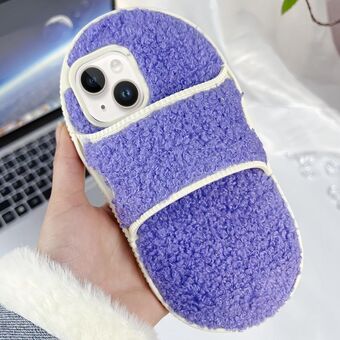 For iPhone 14 / 13 Creative Plush Slipper Design TPU Phone Case(Light Purple)