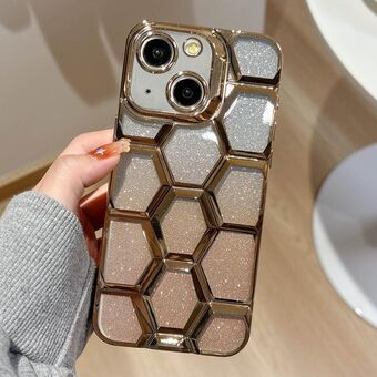 For iPhone 14 Electroplating Laser Engraving 3D Honeycomb Glitter TPU Phone Case(Gold)