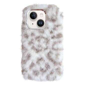 For iPhone 14 Leopard Print Plush TPU Phone Case(Coffee)