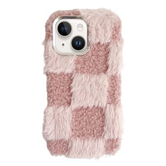 For iPhone 14 Square Grid Plush TPU Phone Case(Pink)
