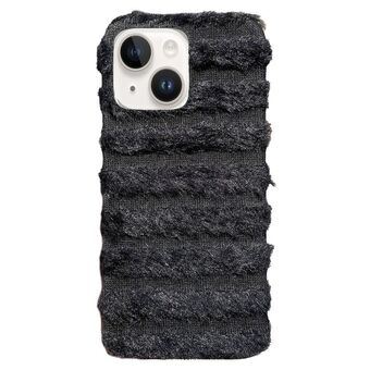 For iPhone 14 Striped Fabric Plush TPU Phone Case(Black)