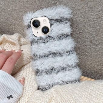 For iPhone 14 Striped Fabric Plush TPU Phone Case(Grey)